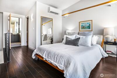 Say goodbye to the cookie-cutter townhome, and hello to the sleek & modern feel of this Portage Bay gem. Award winning Green Canopy Homes opportunity in a prime location. A refined, creative and versatile floorplan checking so many boxes. Open and flowing main level begs to entertain, and the light-drenched wall of windows will knock your socks off. Top floor boasts a generous primary suite, luxurious bathroom, walk-in closet and a private deck with water views. Mid-level offers a second bedroom and office/den nook. Lower level flex space poses a nice guest quarters option with adjacent bathroom. Other appetizing features include A/C mini-splits, cedar-paneled accent wall and a classy barn door slider. Garage parking w/seller-added EV charger. An ideal primary residence, but also an attractive investment property. Convenient everything! Just minutes to UW, Downtown, restaurants, coffee, park and all the waterfront activities you want. Get ready to buy a paddleboard!