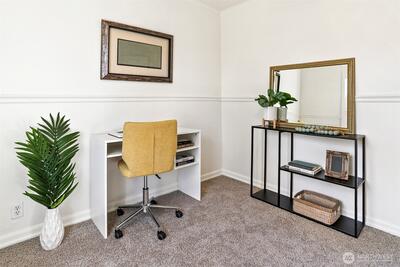 Welcome to your Burien dream! This delightful 3-bedroom, office and 1-bath home sits on a generous lot perfect for backyard BBQs, gardening, or even RV parking. Thinking bigger? With city permits, you could add an ADU for guests or extra income! Enjoy a roomy 1-car garage and refreshed interiors featuring brand new carpeting, fresh paint, and gleaming refinished hardwoods. The spacious kitchen is ready for your culinary adventures, and the built-in dining room cabinet adds a touch of vintage charm. Plus, the port package upgrades, triple pane windows and extra attic insulation—mean comfort and peace of mind. Bring your veteran clients to assume the VA loan with low interest rate. Come see why this gem is the perfect place to call home!