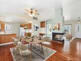 Enjoy Mt. Rainier views from this beautifully maintained, move-in ready 3-bedroom, 1.75-bath rambler home in desirable Berilla Estates. This light-filled residence features an open-concept kitchen and living area with vaulted ceilings and rich hardwood floors, creating an inviting and spacious atmosphere. The vaulted living and dining rooms are anchored by a shared see-thru gas fireplace insert, perfect for cozy gatherings and seamless entertaining. The well-appointed kitchen flows effortlessly into the main living space. The private primary suite offers a relaxing retreat with its own bath and a full wall of closets for ample storage. Two additional bedrooms provide flexibility for guests, work, or hobbies. Step outside to a large side yard with garden space and room for potential RV parking. The covered front porch with durable Trex-style decking adds charm and a welcoming outdoor space to enjoy year-round. Complete with a 2-car garage and located in a peaceful Enumclaw setting!