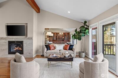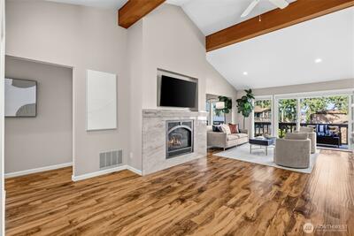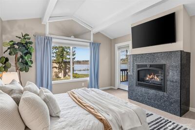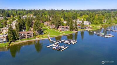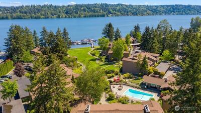 Welcome to Lake Villas, a prestigious waterfront community set along the peaceful shores of Lake Sammamish. This top-floor condo offers breathtaking lake views, soaring vaulted ceilings, covered parking, and a new furnace with A/C for year-round comfort. Thoughtfully remodeled, the home showcases a stunning, state-of-the-art kitchen that opens seamlessly into the main living area—perfect for entertaining or unwinding while enjoying the picturesque setting. The luxurious primary bathroom adds a spa-like touch, complementing the home’s refined finishes and modern design throughout. Located within a gated community, Lake Villas offers resort-style amenities including beautifully landscaped grounds, an outdoor pool, hot tub, sauna, clubhouse, updated fitness center, and a private dock. With its peaceful waterfront setting and elevated amenities, every day feels like a getaway—bringing the ease and enjoyment of a vacation right to your doorstep. Enjoy the perfect balance of peaceful w