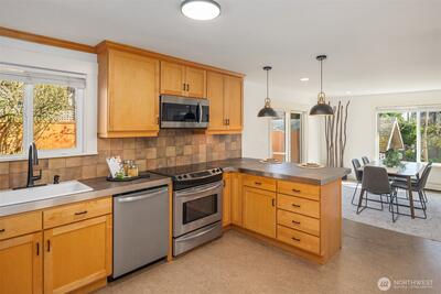 Classic charm and modern updates come together beautifully in this spacious Seattle home. Offering 4 bedrooms plus office, 2.75 baths, and 2,372 sq ft, this property features hardwood flooring on the main level, fresh interior paint, a new lighting package, and a brand new roof with transferable warranty. The open kitchen and dining area connect seamlessly to the backyard patio and fountain, creating an inviting setting for everyday living and entertaining. The daylight basement offers exceptional flexibility with 2 bedrooms plus office, a 3/4 bath, separate entrance, and nearly 400 sq ft of additional storage space that may provide future flexibility for a variety of uses. Ample parking and all new sod installed prior to listing add even more value. Set on one of Bryant’s most loved residential streets, this home is ideally situated near neighborhood favorites like The Bryant Corner Cafe, Bryant Neighborhood Playground, Ravenna Park, Cowen Park, and University Village. Enjoy conveni