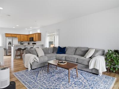 You'll feel the care and attention this home has received the instant you pull up. Located on a peaceful street in the center of Horizon Pointe neighborhood, the home's warmth greets you at the curb. Inside, recently installed hardwood floors run throughout the main floor, catching the light and giving the entire space a warmth and quality that's immediately noticeable. The open-concept layout flows naturally from the living room, anchored by a gas fireplace, to the dining and kitchen, making everyday life feel easy and entertaining feel effortless. Four bedrooms gives everyone room to breathe, and the primary suite with walk-in closet offers the private retreat you've been searching for. Step outside to a fully fenced backyard with patio, your own quiet corner of the Pacific Northwest, ready for summer evenings and weekend gatherings. Attached garage, fresh interior paint and quality finishes throughout mean this home is genuinely move-in ready. Top rated North Thurston schools, minut