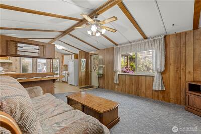 Fully Updated 2BR/1BA with Rare "Pit Set" Foundation Welcome to a home where the heavy lifting is done. This 784 sq. ft. 2 bed, 1 bath residence stands out with a professional "Pit Set" foundation and concrete surround, providing a low-profile look and enhanced stability. Interior Excellence: Enjoy a refreshed living space with new carpet, vinyl windows, and a modern kitchen/bath. Recent upgrades include all-new under-sink plumbing and valves, a water-saving comfort-height toilet, and a new tub/shower surround with updated hardware. Year-Round Efficiency: Stay worry-free with a new electric furnace, new water heater, and a routinely resealed metal roof. The 2-car tandem carport is structurally reinforced with added support posts and cross-beams, complemented by a spacious 10x10 wooden storage shed. Exterior & Location: The grounds are a true retreat, featuring hundreds of mature flowers and plants. Located in Don Wan Estates with easy access to Hwy 167, Hwy 18, and The O