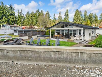 There is a moment—just as you leave the city behind—when everything begins to slow. This is where it leads. A beautifully remodeled Hood Canal retreat with 50' of no-bank bulkhead frontage and owned tidelands, where weekends stretch longer and time feels different. Just an easy drive from Seattle or Bellevue, it is the kind of place you arrive Friday afternoon and instantly exhale.Wake to soft eastern light over the water. Step outside with coffee in hand, the canal just feet away. Spend your day paddleboarding, kayaking, or beachcombing, harvesting oysters and clams from your own shoreline. As evening falls, gather on the covered deck, light the firepit, and take in the stillness of the canal.Inside, vaulted ceilings and expansive windows invite light and calm. Whitewashed cedar walls and ceilings pair with warm LVP flooring for a relaxed coastal aesthetic. The remodeled kitchen is designed for effortless entertaining, while the primary bedroom offers flexibility with barn doors.