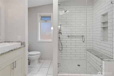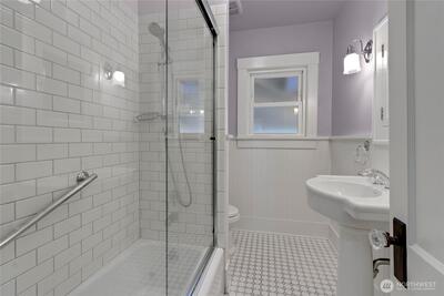 Welcome home to this charming Tacoma classic—offering timeless character with thoughtful updates and modern livability. Set on a prominent corner lot, this stately home blends traditional design with Craftsman-inspired details, creating warmth and personality throughout. The main level features a spacious, open kitchen and dining area ideal for gathering, along with an inviting living room complete with classic built-ins, a wood-burning fireplace, and vintage glass door knobs that add a touch of original charm. Two bedrooms and a tastefully remodeled full bathroom complete the main floor. Upstairs, the expansive primary suite provides a private retreat, featuring a well-appointed ensuite with heated tile floors, double vanity, and walk-in shower. The generous walk-in closet includes a built-in ironing station, along with an office or potential fourth bedroom offering flexibility for today’s lifestyles. The partially finished basement provides additional space for storage, hobb