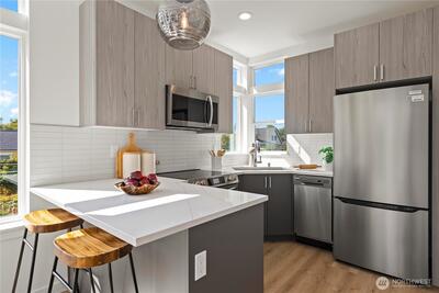 SPECIAL RATE AS LOW AS 3.75%.* Welcome to Serene by MRN Homes—an exceptional new construction opportunity in the heart of Ballard. Thoughtfully designed for modern living, this rare corner end home features walls of windows, sun-drenched interiors, and designer finishes throughout. The open concept main level is anchored by a chef’s kitchen with premium stainless steel appliances, sleek cabinetry, and generous storage. Upstairs, the top-floor primary suite offers a private retreat with a spa-inspired bath and ample closet space. A lower-level ensuite bedroom provides flexibility for guests, rental potential, or a dedicated home office. Your show-stopper rooftop deck with water and power extends your living space outdoors—perfect for entertaining or taking in Ballard’s iconic setting. Located just minutes from Golden Gardens, the Ballard Farmers Market, top-rated dining, and boutique shopping, this home delivers on both lifestyle and long-term value. No HOA Dues + 4-Star Built G