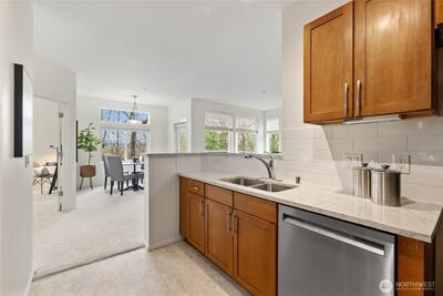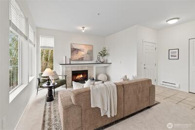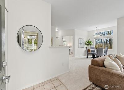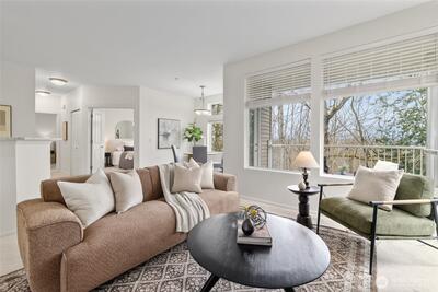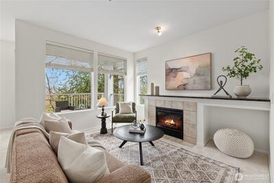Welcome to this bright end-unit with peaceful views of the expansive greenbelt and valley. This impeccable home will captivate you as soon as you enter. Freshly painted, brand new floors, large windows w/ new blinds thoughout, smart Kitchen with quarz counters & SS appliances and wonderful breaksfast bar. Lrg open living room w/ cozy fireplace & long decorative granite mantle. Seperate dinning space w/ views to treed green space opens to private deck . French doors open onto the 2nd bedrm spaciou enough to combine it as office. Large primary suite w. tranquile views, upgraded double vanity, quartz counters and soaking bathtub. Access your home through your own private garage or around the building to the right. NO STEPS! Convenient Location:near SeaTac, major highways, light rail & shopping. Urban convenience w/ peaceful surroundings! PLUS no rental cap! Seller to credit buyer $3,000.00 towards closing costs! New roof as of summer 2025!