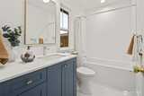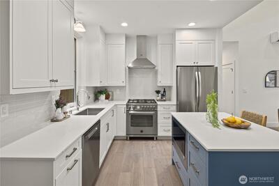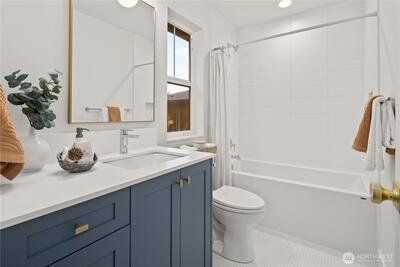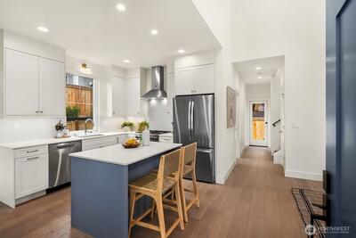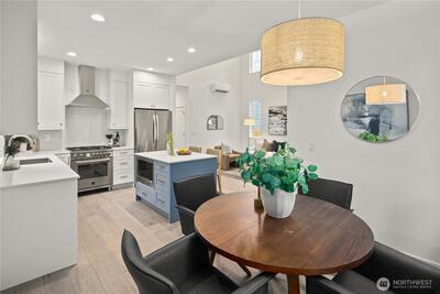 Exceptional new construction cottage by Gerry Homes East of Market, offering refined design & elevated finishes. A charming porch welcomes you to the gracious main level featuring bright & airy two-story living room, with open concept dining and kitchen with gas range. Unique main floor bedroom and ¾ bath offers flexible floor plan. Upstairs showcases two bedrooms, each with en suite baths for ultimate privacy and convenience. Moments to downtown Kirkland, Lake Washington, & extensive dining.