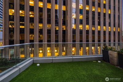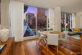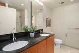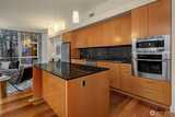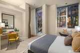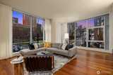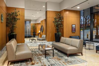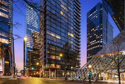 Floor to ceiling windows create a modern, bright feel in this downtown condo with expansive, open floor plan. Corner unit features sophisticated finishes including hardwood flooring + high ceilings. Dramatic loft-like living/dining area offers potential for refined entertainment. Chef’s kitchen boasts high-end Bosch stainless appliances, gas range, sleek cabinetry. Ensuite bath highlighted by dual-sink vanity. In-unit washer/dryer + guest powder room add convenience. Striking concrete/steel/glass building with Gold LEED certificate has been awarded for environmentally-conscious construction. Enjoy lifestyle amenities such as 24-hr. concierge, terrace, well-equipped gym, guest suites, parking. Highly walkable location in heart of everything.