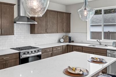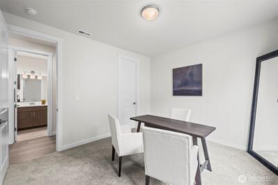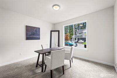 Located in Trails End off Brookdale Rd, this popular floorplan is designed for modern living w/ 4 bdrm, Den, Loft, 2.75-bath and 3 car garage. Step inside to an open layout with generous natural light, thoughtful design details & plenty of room to both work & relax. The gourmet kitchen has tons of cabinetry, generous island, large walk-in pantry and opens to the dining & great room w/ linear Fireplace, creating a true heart-of-the-home gathering space. A main-level guest room/den and ¾ bath provide flex space offering a work from home or main floor bedroom need. Upstairs, the primary suite fits a king bed with plenty of space for your other furniture. The primary ensuite offers a spa-style bath with soaking tub and walk-in tile/glass shower plus a roomy closet. 3 addl bdrms, full bath, bonus loft and laundry room with H/E washer/dryer finish out the upstairs. Heatpump (A/C), EV prewire, covered patio & cul-de-sac location too. Close to JBLM, shopping & commuter routes, this home del