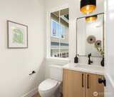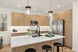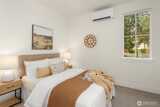 Built by A&R homes, no detail was missed in this sweet and spacious home. Enter through your welcoming front door to a well-designed great room complete with cozy fireplace that exudes warmth. Enjoy an open kitchen design featuring Bellmont cabinets, 3cm Stratus quartz countertops and Copper Creek hardware. The large island allows for seating or utilize the dining nook adjacent to patio slider doors. Convenient powder bath on main floor is great for guests. Head upstairs where your two bedrooms, two full bathrooms and laundry await. Both bedrooms include individual heating and cooling. Your spacious secondary bedroom has large windows positioned perfectly for both natural light and privacy. The primary bedroom features high ceilings, ample windows, and a custom closet design by Closet Creations. The primary bath cannot be missed with dual vanity, an oversized shower and relaxing soaking tub. Your new home is equipped for energy efficiency as your interior walls and floors come fully in