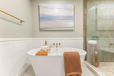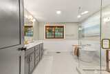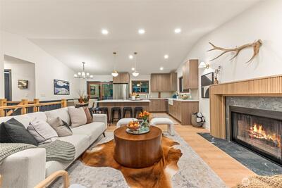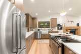 Looking for serenity amidst the vibrant Bellevue setting? This is it. Perfectly tucked back on a private cul de sac amongst a lush expansive NW lot with multiple outdoor spaces to unwind and play. Inside, a refined, timeless interior offers an ideal open layout with vaulted ceilings, a cozy fireplace anchoring the living room, and seamless flow to the impressive kitchen and adjoining dining. Sleek yet warm cabinetry, timeless stone counters, a textured tile backsplash, and rich finishes create an inviting ambiance. Down the bedroom wing, the primary is a true retreat with a walk-in closet with built-ins and a spa-like spacious five-piece bath with ample storage designed for both relaxation and function. A secondary bedroom and full bath complete the main. The lower level continues to impress with a bonus room with patio access, two additional bedrooms—ideal for office or guest use—and a full bath with elevated finishes. Updated electrical and plumbing, plus new finishes and fixture