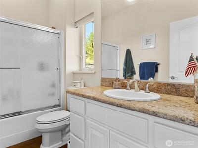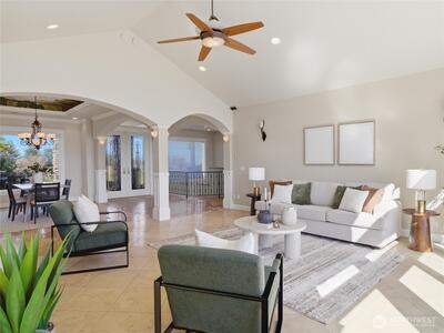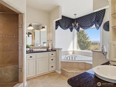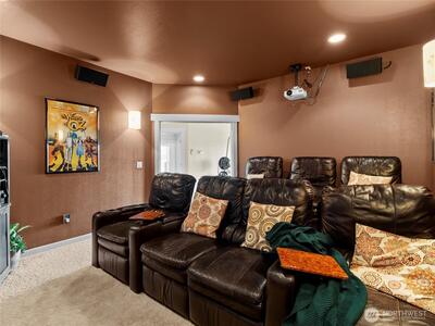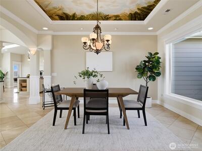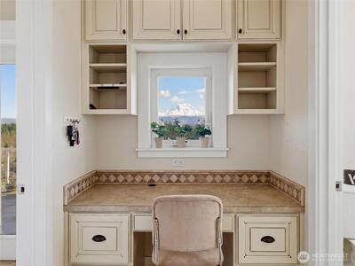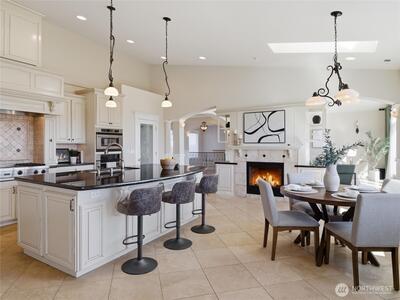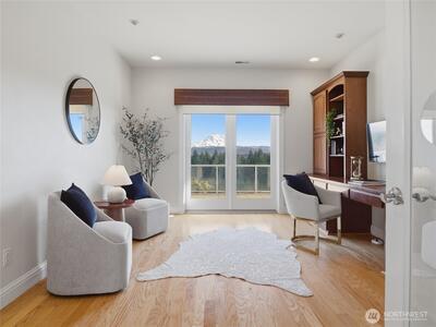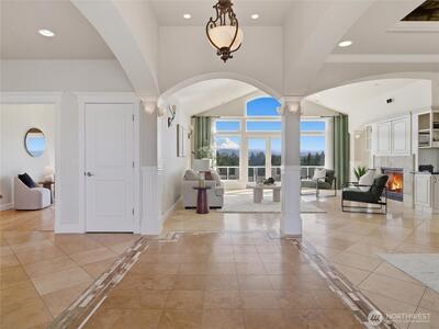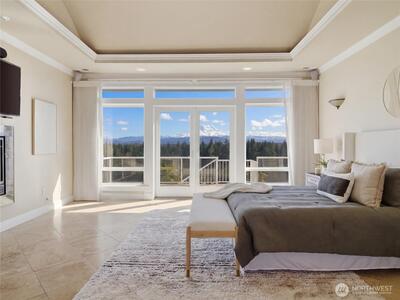 Live above it all in Kinsman Court, a gated community featuring luxurious estates and unmatched panoramic views of Mt. Rainier, the Olympics, and the Cascades. This 4,500+ sq ft home on nearly 10 acres offers 3 bedrooms plus an office (potential 4th), 3.75 baths, and a main-floor primary suite designed as a private retreat with a fireplace, jetted tub, steam shower, and stunning mountain vistas.The chef’s kitchen is appointed with granite slab counters, high-end built-in appliances, custom panel-ready finishes that seamlessly conceal appliances for a refined, cohesive look, and radiant-heated travertine flooring. Thoughtfully designed for comfort and entertaining, the home also features a theater room, dual laundry on main and lower levels, A/C, remote blinds, and a built-in vacuum system. The secondary bedrooms are thoughtfully designed as junior suites, each featuring walk-in closets and private attached bathrooms, offering comfort and privacy for guests or multi-generational livi