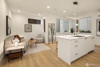 Acclaimed developer Halverson Design Build presents a classic New York City-style collection of residences, each featuring rare self-contained apartments on the first floors, ideally suited for rental, guest quarters, home offices, or live/work spaces. Modern design + a thoughtful layout highlight this sun-drenched Fremont townhome. Chef’s kitchen offers premier stainless appliances, quartz counters + designer finishes. Unwind in the luxurious primary bedroom suite with spa-like bath, which occupies the home’s entire top level. Step up to a private rooftop deck, an urban oasis with mesmerizing views + great potential for entertaining. Vibrant, walkable neighborhood with great parks + dining.