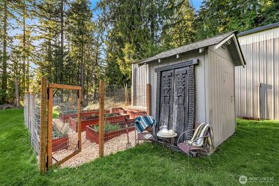 Once upon a time 7+ peaceful sunny private acres with fruit trees including Asian pear, Italian plum, towering evergreen laced with paths, fenced garden beds, plenty of room for soccer, flag football, volleyball, massive firepit, and dirt bike trails through the woods. The 5-year-old home features primary on the main with a built-in sauna, open floor plan, kitchen-dining- great room tall ceilings, an actual chef’s kitchen including walk-in, oversized pantry. Two NanaWall doors flank the living room basking light in from all sides. Two outdoor patios – One covered one for sun! Plus++ detached 600 garage with ¾ bath and laundry for those really muddy mountain bike days. Above is a wonderful 600 sq ft apartment with a full bath and bedroom. Need more – the 1500 sq ft SHOP with a large roll-up door and the best “loft-cave” one could hope for – tv, speakers, poker table. And then… fanciest repurposed chicken coop of all times – guest bunk, hide-out, potting shed or