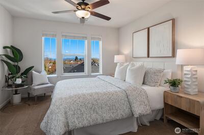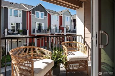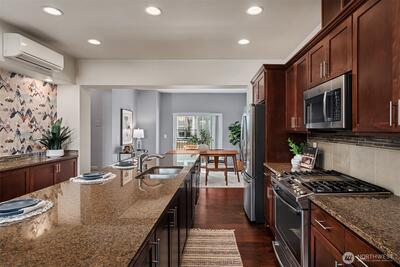 Step into style, comfort, and community in this beautifully designed 2-bedroom + den townhome in High Point at Graham. Surrounded by peaceful, tree-lined streets, this home offers the perfect blend of modern living and everyday convenience in a welcoming neighborhood. The bright, open main level features engineered hardwood floors and a seamless layout ideal for both entertaining and daily living. The kitchen truly shines with quartz countertops, a tile backsplash, gas cooking, stainless steel appliances, and rare extra counter space and storage—perfect for anyone who loves to cook, host, or simply enjoy a well-designed space. Enjoy your private deck for morning coffee, weekend lounging, or evening unwinding. Upstairs, the versatile den creates the perfect home office, media space, or creative retreat to fit your lifestyle. Both bedrooms are spacious, light-filled, and designed for comfort and privacy. Stay comfortable year-round with energy-efficient ductless mini-splits, and take a