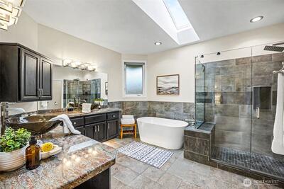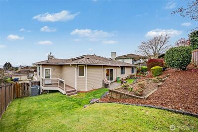 Meticulously maintained, move-in ready view home in sought-after Dash Point Estates with no HOA. Enjoy stunning Sound and mountain views from the deck...perfect for morning coffee or sunsets. Updated kitchen with granite slab countertops, stainless steel appliances, and hardwood floors throughout. Light-filled dining room with coved ceilings. Spacious primary suite with dual walk-in closets and a spa-like bath featuring granite counters, soaking tub, glass surround shower, and vessel sinks. Stay cool with A/C and enjoy a fully fenced backyard ideal for entertaining. A rare opportunity with unforgettable views.