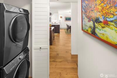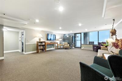 Modern corner unit located in the heart of Belltown: easy walk to Downtown/South Lake Union--walk to work in minutes! Enjoy open-concept living filled with natural light. A remodeled kitchen fit for a chef. Private balconies ideal for unwinding while soaking in the skyline. Tens of thousands invested in 2022 designer remodel: new premium hardwood floors, gourmet kitchen complete with new cabinets, new appliances, quartz counters with waterfall edge & elegant backsplash. Gorgeous bathrooms--beautiful tile and walk in shower. New carpet in primary bedroom. Autoblinds throughout. Two perfect home offices, including second bedroom with murphy bed, and a bonus space connected to the primary bedroom with an amazing view of the space needle! Massive pimary suite with walk-in closet and gorgeous bathroom. In-unit laundry and secure garage parking. Rooftop deck with panoramic views of Puget Sound & Space Needle. Fitness center, pool, jacuzzi, game room. A short walk to the market, shopping, the