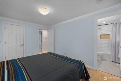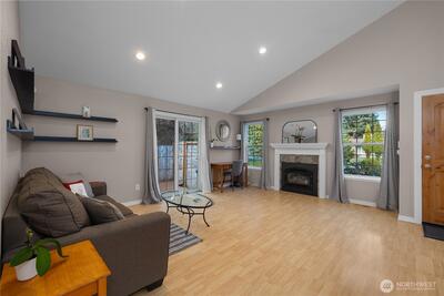 Enjoy the best of the West Olympia lifestyle in this beautifully updated 3-bedroom, 2-bath rambler, just a short distance to the Westside Co-op, local dining, schools, downtown, parks and West Bay Woods whose nature trail takes you down to the waterfront park. A covered deck welcomes you in, while vaulted ceilings, a Gas FP and an open layout create a light, spacious feel throughout. Features include a New 2025 efficient ductless heating and cooling system, New 2023 NGFA Furnace, New (most replaced) 2023 Crawlspace Insulation, and New Vapor Barrier, New Front 2024 and Rear 2024 Decks, New Int. and Ext. Paint, and Various Electrical Upgrades. You will also find easy to clean, warm wood look plank flooring, nice crown molding, custom wood accents, and a move-in ready interior with thoughtful updates throughout. The kitchen offers stainless steel appliances, quartz counters, tile backsplash, and a nice pantry. Both bathrooms feature tasteful tile shower surrounds. The fully fenced backyar