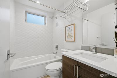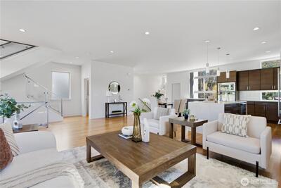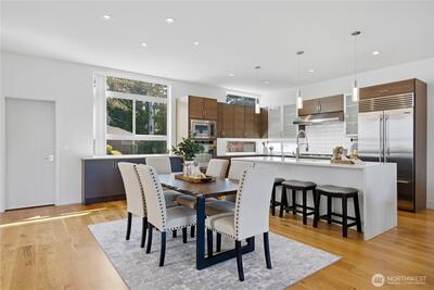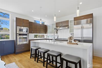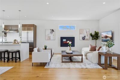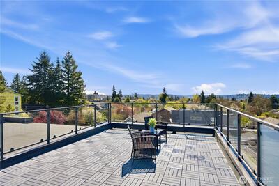 NW Modern home crafted with exceptional quality and attention to detail, perfect for everyday living and entertaining. The open-concept design features a stunning kitchen with professional-grade appliances, flowing into a covered outdoor living area with a gas fireplace. Enjoy spacious interiors, including a large lower-level family room and guest suite, while the luxurious primary retreat offers a spa-inspired bath. While the official square footage captures the interior, the home’s true scale is found in its expansive outdoor footprint; a covered balcony and massive, sun-drenched rooftop terrace with breathtaking 360-degree views offer significant additional living space not reflected in the reported metrics. This like-new home includes A/C, a 2-car garage plus another parking spot, and a low-maintenance yard, all located just minutes from shops, parks, and public transportation.