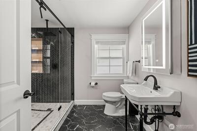 Extensively updated and thoughtfully improved, this property offers a rare blend of timeless beauty with modern luxuries. Starting with a new roof in 2020, this home has undergone significant upgrades inside and out. The main residence features a full renovation completed in 2024 with all-new electrical, plumbing, windows, lighting, and modern finishes throughout. The kitchen and living spaces were fully rebuilt with new appliances and a built-in buffet with two mini fridges. A tankless water heater and whole-home mini-split system provide efficient comfort. Newer fencing along the south and west boundaries with added gates, and durable cement board siding installed during the 2024 restoration.The primary suite includes a remodeled bath and closet with tile flooring, tiled shower, updated fixtures, and lighted vanity. Additional highlights include a gas fireplace inserts, expanded upstairs hall bath, central network panel with ethernet wiring, electric blinds, exterior eave lighting, a