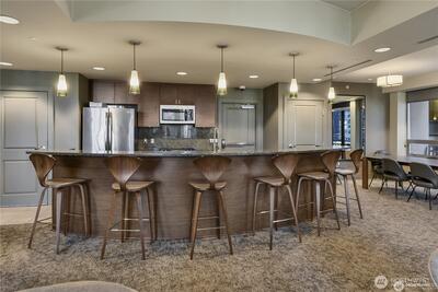 Elevate your lifestyle in this rarely available 1-bedroom plus den floor plan. Spanning nearly 1,000 sq ft, the home flows seamlessly from the sleek hardwood entries to a light-drenched living area. The flexible den provides the "extra room" you’ve been looking for, tucked away from the main living space for maximum privacy. Enjoy breathtaking views of the Seattle skyline from your private balcony or the building’s iconic rooftop terrace overlooking Lake Union. All-inclusive HOA (cable/internet included!) and secure garage parking make this the most convenient luxury move in the city. Walk Score 100 - steps to Amazon, Whole Foods, restaurants, light rail, and all Downtown Seattle Fun.