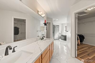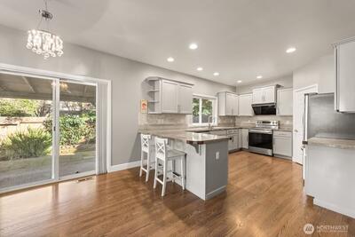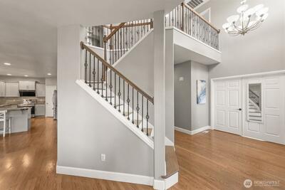 Fall in love with this gorgeous house with an ideal floor plan with vaulted ceilings designed for comfortable living with light-filled interiors and stylish finishes in the center of Renton Highlands. Entertainers' kitchen, beautiful countertops and SS appliances with spacious dining area will take you outside to a quiet serene backyard. Downstairs boasts a relaxed family room, guest bedroom, 1/2 bath, 2 car garage with ample storage space. Primary suite spotlights a lux 5 piece bathroom with a big laundry room complete the upstairs. Ideal location with easy access to freeway, Renton Landing/Southport, Seattle, Bellevue & Eastside business hubs.