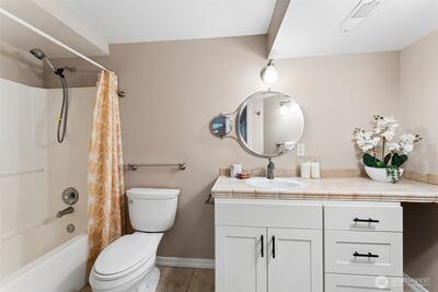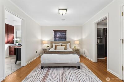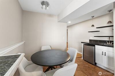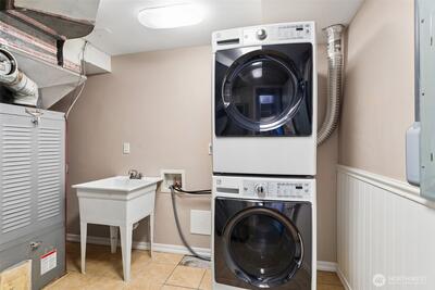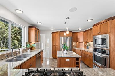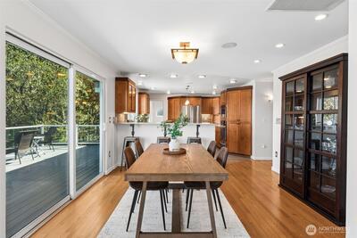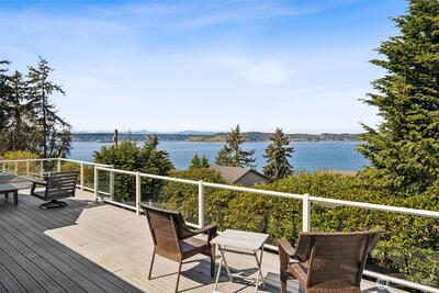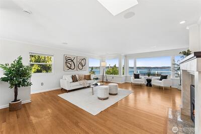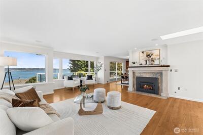 Sweeping Puget Sound and Olympic Mountain views set the stage for this beautifully maintained home, offering unforgettable sunsets, views of Vashon Island, and passing ships from the expansive glass-wrapped entertainer’s deck. Designed for both everyday living and hosting, the chef’s kitchen features high-end appliances, gas range, granite countertops, glass-front cabinetry, built-ins, wine cooler, center island, and a dedicated beverage station. The open-concept living room showcases rich hardwood floors, a cozy gas fireplace with custom millwork and marble surround, and is wired for whole-home stereo. The spacious primary suite offers a private retreat with a luxurious en-suite bath, walk-in closet w/another set of washer/dryers plus door leading to private outdoor space. The lower level provides flexible living space with direct access to a fully fenced, private yard—perfect for relaxing or entertaining. Ideally located with easy access to Dash Point Park, beaches, pier, dinin