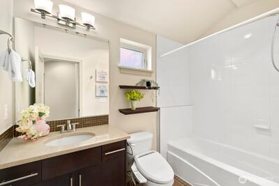 Modern end-unit townhome in desirable Wallingford! Prime location just one block to Gas Works Park, Lake Union waterfront, and the Burke-Gilman Trail—perfect for biking, running, and enjoying Seattle’s outdoor lifestyle. Walk to top restaurants, cafes, and neighborhood amenities. Built in 2008, this 2-bedroom, 1.5-bath home features an open-concept floor plan with hardwood floors on the main level and abundant natural light throughout. Updated kitchen with quartz countertops, stainless steel appliances, and gas range—ideal for cooking and entertaining. Upstairs offers two spacious bedrooms with vaulted ceilings and large windows. Additional highlights include an attached one-car garage, fenced backyard, and quiet alley access. New paint. No HOA dues. Don’t miss this rare find in this sought-after Seattle neighborhood!