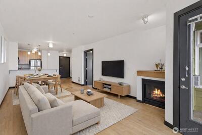 Live the Lake Union lifestyle at the Portal! This well-maintained 1bd, 1bth condo features a bright, open-concept layout designed to capture VIEWS from all rooms, along with a gas fireplace, walk-in closet, and a flexible nook ideal for work or relaxing. Conveniently located near parks and Lake Union trails with easy access to South Lake Union, Fremont, Queen Anne, and downtown dining, shopping, and transit. Approximately a 10-minute walk to the Meta Westlake office, and direct bus access to Apple, Google, and Amazon campuses. An expansive rooftop deck with sweeping lake, city, and Cascade mountain views, secure parking, and extra large storage complete this inviting urban escape with exceptional access to the best of Seattle living. No Rental Cap!