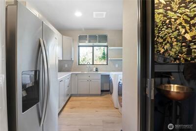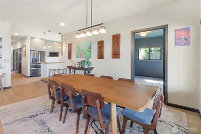 Elevated living in this Des Moines view home featuring 4 bedrooms, 4 baths, and beautifully light-filled spaces. Expansive windows showcase sweeping views with remote control solar shades. The kitchen, which features a butler’s pantry and 2 eating bars, and the large living and dining rooms create an ideal setting for entertaining. Huge laundry room with cabinets and additional refrigerator and freezer. Large, covered view deck & view patio below. The attached 4 car garage is 1,270 sq ft & 14’ tall, featuring lots of high windows for natural light, a rapid EV charger, and has a heated floor! Also, uncovered parking for 9 cars or RV parking. Other features include a 90% gas furnace, tankless water heater, air conditioning, whole house generator, The landscaped terraced lot is 15,028 sq ft featuring fruit trees and lots of various flowers. A standout feature is the permitted 700 sq ft ADU - perfect for guests, income, or extended living. It has a full kitchen, dining and living areas