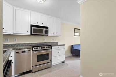 Enjoy city living in this Madison Park Waterfront pied a terre with views of Lake Washington and Cascade mountains! This beautiful top floor end unit is fully updated, including a brand new Nectar mattress for the Murphy bed. Enjoy front row seat to beachside activities - watch boats and birds in action! Venture out to launch your kayak or paddleboard from the private, community dock, gather friends for a tennis match across the street, or grab a bite at one of the fabulous neighborhood restaurants. Amazing convenience, with full time on site manager, in building laundry and an individual storage unit.Easy access to public transit with a bus stop just in front of the building. Pets are welcome with no restrictions. No rental cap, great HOA.