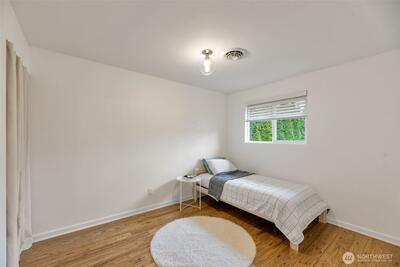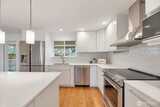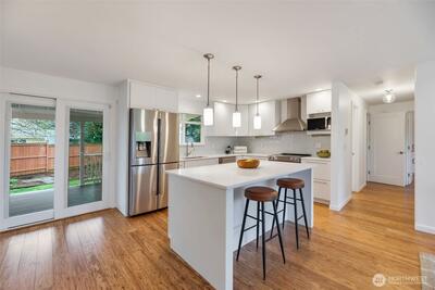 Beautifully remodeled and truly move-in ready light-filled 3-bedroom classic rambler on a quiet cul-de-sac in the Renton Highlands—offering the perfect balance of privacy, convenience, and modern comfort. Thoughtfully updated w/ a clean, contemporary design. The stunning kitchen features quartz countertops, high-quality cabinetry, premium appliances & a powerful vent hood. The bathroom delivers a tranquil experience with a glass tile shower, multi-rain heads, heated tile, granite countertop & wall-mounted vanity and toilet. Rich bamboo flooring throughout, complemented by radiant underfloor heating for cozy comfort year-round. Enjoy efficient heating and cooling with a ductless mini-split system w/ zoned controls. Smart features like hardwired ethernet & built-in sound systems. Oversized flat yard—fully fenced, landscaped & bordered by mature hedges in front for exceptional privacy. The expansive covered deck creates a seamless indoor-outdoor living experience. Large bright cust