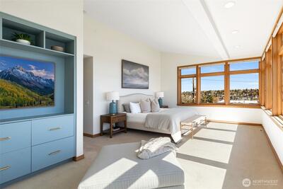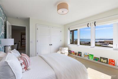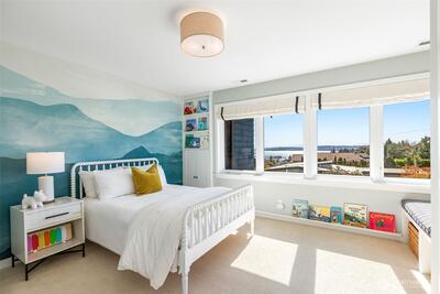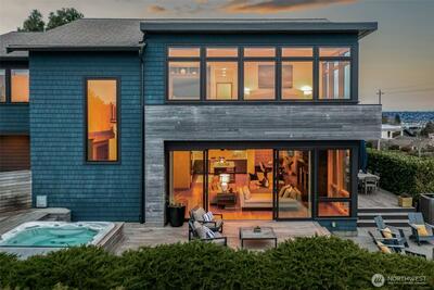 Effectively rebuilt in 2015 with every detail thoughtfully reimagined, this architecturally designed, turnkey Magnolia NW contemporary blends custom craftsmanship with unforgettable views. A dramatic two-story entry and walls of windows frame sweeping vistas of the city, Puget Sound, and Mt. Rainier—evolving from morning light to evening glow. Open-concept living flows seamlessly to a wraparound deck with built-in hot tub, creating a true indoor-outdoor experience ideal for both everyday living and effortless entertaining. The primary suite is a true escape, featuring vaulted ceilings, unobstructed 180° views from Mt. Baker to Mt. Rainier, a spa-inspired ensuite bath, and an oversized walk-in closet. With views from every upstairs bedroom and a private guest suite on the main level, this home offers a rare combination of design and function in one of Magnolia’s most sought-after settings. High-quality construction and designer finishes shine throughout, including fir windows, eleg
