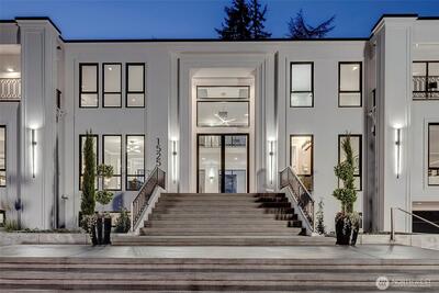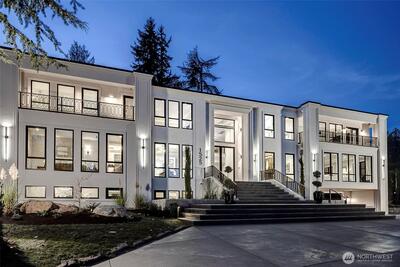 Set in one of Medina’s most established residential pockets, directly across from the storied Overlake Golf & Country Club, 1525 79th Pl is a rare expression of world-class custom living in a setting defined by privacy and proximity. Spanning more than 9,000 SF, this is not luxury built to satisfy a market checklist, but a true statement residence- architecturally ambitious, sophisticatedly refined, and executed with a level of craftsmanship and permanence seldom found in newly built inventory. 10-foot gallery-style hallways, 5 en-suite bedrooms, 8 baths, 2 offices, and expansive walls of triple-pane glass create a powerful sense of scale, light, and precision, while lovely views extend from the lush golf course to the Bellevue skyline. Thoughtfully designed for both daily living and elevated entertaining, the home also features a sky-lounge, outdoor BBQ kitchen, 4 sets of washers-dryers, and a Tesla Powerwall system that further underscores its exceptional level of planning and fini