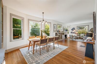 In a perfect setting only 2 blocks from Volunteer Park and SAAM, you are also only a stroll away from the great schools, cafés, shops and restaurants of North Capitol Hill. This charming 1905 North Capitol Hill home blends timeless character with exceptional potential. Period details shine throughout—hardwood floors, leaded windows, classic built-ins, a bay window, and a Batchelder-tiled wood-burning fireplace with an elegant mantle. The circular main floor layout is ideal for entertaining, flowing seamlessly from the entry through French doors into spacious living and dining rooms. The bright, eat-in kitchen features charming built-in window seating and opens to a sunny east-facing deck—perfect for morning light and indoor-outdoor living. A ¾ bath completes the main level. Upstairs, you’ll find three generously sized bedrooms all with Fir floors awaiting your personal taste for refinishing, walk-in closets and a full bath, while the lower level offers laundry and utility spac