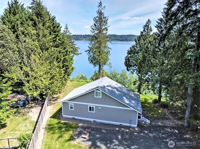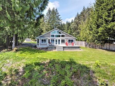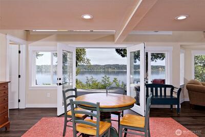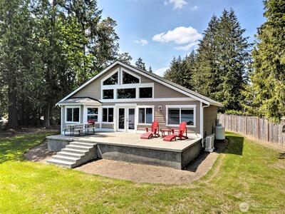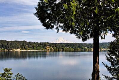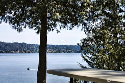 Tucked away on the tranquil shores of Stretch Island, this beautifully reimagined waterfront beach cabin offers the ultimate escape into relaxation & effortless living. Set on just over an acre of privacy, the retreat captures sweeping views of majestic Mt. Rainier & the peaceful waters of Case Inlet...worlds away from the everyday! An easy drive from Seattle or Bellevue, it's the kind of place you'll arrive Friday afternoon & instantly exhale. Completely remodeled from the ground up in 2022, the cabin blends modern comfort with timeless coastal charm & is offered turn-key with furnishings. Inside, an open-concept layout welcomes you with vaulted ceilings, expansive windows, & French doors that invite natural light & breathtaking scenery into every corner. The spacious patio is designed for pure enjoyment; a sunset barbecue or simply unwinding to the view of the water. A gentle trail leads to the beach, where summer days bring frequent orca sightings & opportunities for endless explora