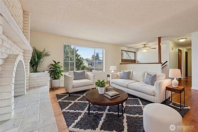 Nestled on a quiet cul-de-sac in Kent’s East Hill, this split-level home offers flexible living and excellent income potential. Featuring 3 bedrooms and 2 bathrooms upstairs including a master ensuite, plus a lower-level suite with its own bathroom and kitchenette and private exit ideal for rental income, multigenerational living, or house hacking. Enjoy timeless high quality finishes from hardwood floors, quartz countertops, solid wood cabinetry, and custom fireplaces. Major updates are already taken care of which include roof, siding, windows, and hot water tank, offering peace of mind this home is ready for your personal finishing touches. Situated on a fully fenced 8,000 sq ft lot this home offers privacy and comfort. Conveniently located 8min to Kent Station for shopping, dining, or transit, and freeway access. This well maintained investment won't last long! Some images may be virtually staged.