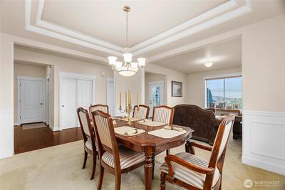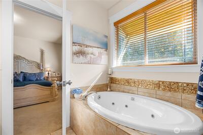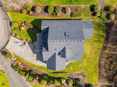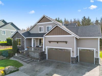 Welcome to the Field of Dreams community. This residence is situated on an expansive, private lot with mature landscaping and exceptional views of the Olympic Mountains from its hilltop location. The meticulously maintained home encompasses 2,750 square feet and includes four bedrooms and two and a half bathrooms. The gourmet kitchen seamlessly connects to the family room, which features a gas fireplace w/access to the large covered patio with cedar T&G ceiling—ideal for gatherings. The main floor primary suite offers a five-piece bath and soaking tub. Additional features include a formal dining room with a coffered ceiling and accent lighting, a comfortable living room, a spacious den, two upstairs bedrooms plus a bonus room/bedroom, and an oversized three-car garage.