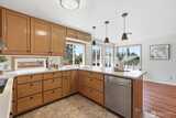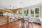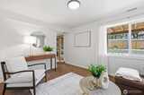 Welcome to Richmond Highlands—an impeccably refreshed, light-filled home where thoughtful updates shine throughout. Gather and unwind in the open living and dining spaces, featuring rich Jatoba wood floors and a gas fireplace that creates a warm and inviting space. Upstairs, all three bedrooms showcase oak hardwood floors. The kitchen blends seamlessly with tasteful design while offering timeless finishes. A well thought out plan with table space and a charming window ledge perfect for morning coffee or greenery. Step onto the sun-drenched south-facing deck overlooking the fully fenced grassy yard, paved patio, and garden beds filled with prolific fruit and berries. The lower-level offers a versatile fourth bedroom with a Murphy bed and stunning wood-burning fireplace with a labradorite granite surround. A spacious family room and generously sized laundry room complete the lower level, while exceptional storage and abundant outlets support today’s work-from-home lifestyle. Solar pa