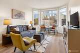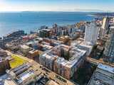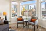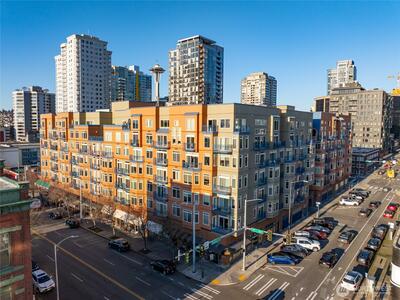Incredible light & views of the downtown skyline await from this fabulous south-facing unit at Belltown Court! Fresh paint & new LVP floors glow in warm sunlight streaming thru large bay windows, framing ever-changing urban vistas. Efficient floor plan lives larger than its sqft, offering comfortable flow. Enjoy takeout from Belltown’s endless list of restaurants or cook at home in the open kitchen, featuring quartz counters, ample storage & stylish open shelves. Spacious bdrm can fit a king-sized bed, w/ access to the balcony so you can greet the morning sun, savor Puget Sound views, or wind down to twinkling city lights at night. In-unit W/D, secure garage parking & an extra storage unit included. Belltown Court boasts an impressive list of amenities: an indoor pool & hot tub, sauna, huge fitness center, a picturesque courtyard, lounge, secure lobby entry w/ a concierge & a rooftop deck w/ panoramic views of Elliott Bay & the Olympic Mtns. One of the few buildings in Seattle that a