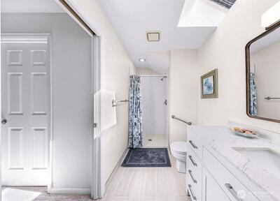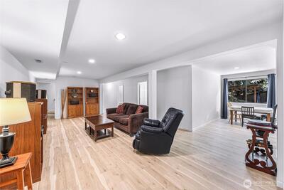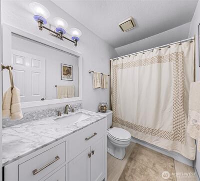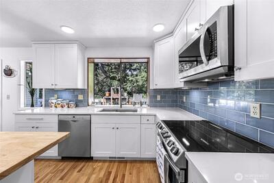This stunning 6-bedroom, 3-bath home offers the perfect blend of traditional elegance and contemporary design, ideally located on an expansive quiet corner lot in the heart of Timberline—one of Sammamish’s most sought-after neighborhoods. Thoughtfully remodeled inside and out, this home is truly move-in ready. Freshly painted main level features a bright, open-concept layout with hardwood flooring and new carpeting. The beautifully redesigned kitchen showcases custom maple cabinetry, quartz countertops, and newer stainless steel appliances, flowing seamlessly onto your large deck perfect for grilling or the inviting dining room and living room with cozy wood-burning fireplace. The lower level offers incredible flexibility with a separate ground-level entry, ideal for guests or rental potential complete with 3 additional bedrooms, bath and large living space and kitchenette with dining area and tons of storage. Outside, enjoy your beautifully landscaped yard in both the fr