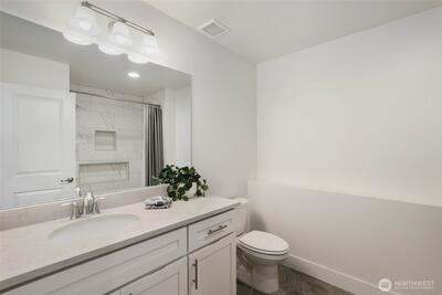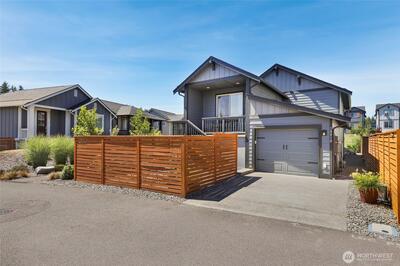 Meticulously maintained and filled with natural light, this thoughtfully designed 3-bedroom Seward plan home features an open-concept layout perfect for modern living. The spacious gourmet kitchen boasts stainless steel appliances, quartz countertops, a breakfast bar, ample cabinet space, a walk-in pantry, & updated lighting throughout. Features include; A/C, 3 generously sized bedrooms, spacious garage w/ alley access & ceiling mounted fire sprinklers. Enjoy the low-maintenance backyard w/ dry creek rock beds, sun shades, & a covered patio offering a peekaboo view of Mt. Rainier. Relax on the oversized front porch overlooking open green space, or explore miles of scenic trails in the sought-after Tehaleh community.