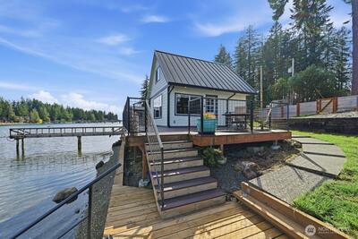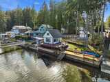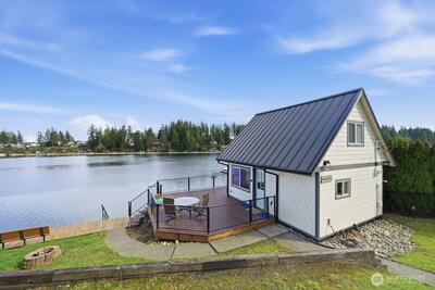 Experience the magic of 75' of stunning low-bank waterfront, where every day feels like a getaway. This unique property features a charming 1 bed/1 bath cabin plus a separate 1 bed/1 bath guest house—perfect for weekend escapes or a fantastic investment opportunity. Enjoy an incredible 700 sq ft deck perched right at the water’s edge, offering unmatched outdoor living, abundant wildlife viewing, and built-in kayak storage for effortless adventure. Inside, take in water views from every room. The primary bedroom showcases vaulted T&G pine ceilings and a beautifully remodeled bathroom. The updated kitchen, new metal roof and gutters, Hardie siding, vinyl windows, and new well pump provide peace of mind and modern comfort. Home is sold furnished. A rare chance to own true waterfront living—relax, rent, or reimagine your perfect retreat.