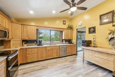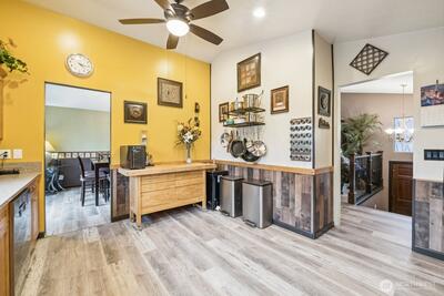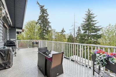 Welcome to this spacious 3,345 sq ft home tucked away on a quiet cul-de-sac in Renton, set on a larger lot with room to live, grow, and enjoy. The main floor features three bedrooms, including a large primary suite with a walk-in closet, along with two full bathrooms. A bright living room with expansive windows fills the home with natural light and is complemented by a cozy fireplace. The kitchen and dining area open to a west-facing patio deck, perfect for enjoying beautiful sunset views. The middle lower level offers additional flexible living space, featuring one bedroom, one bathroom, a dedicated laundry room, and a spacious living room with a second fireplace—ideal for extended living or entertaining. A finished basement apartment with its own separate entrance and driveway provides excellent potential for rental income, multi-generational living, or guest accommodations. Outside, enjoy the convenience of an attached two-car garage plus a detached garage/shop with an upstair