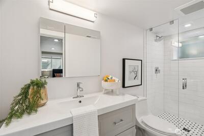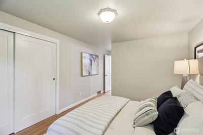 Welcome to your prime-Ballard area location, move-in ready home! This North Beach home has modern amenities and quality renovations throughout it's 2,260 sq ft, including AC installed in 2025. Situated on a dead-end street, you will be minutes from Shilshole Bay Marina and a short distance to Golden Gardens Park. Light & Bright, with 4 bedrooms w/2 owners suites, 2 fireplaces, solid Red Oak flooring & an oversized living/rec room downstairs. Gourmet kitchen boasting beautiful quartz countertops, full backsplash, undermount sink, & wainscoting. Gorgeous remodeled bathrooms, & outside, a cozy backyard boasting an expansive composite deck with built-in seating. Upgrades also include tons of new lighting, & a hi-efficiency furnace. Private & landscaped lot, w/off-street parking for cars, boats, RV's or possible ADU. 2-car garage as well as driveway parking affords plenty of flexibility for cars, storage and additional flex space. Mortgage savings may be available for buyers of this excepti