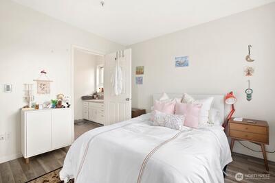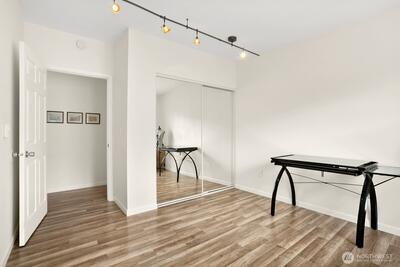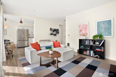 Welcome home to this top-floor condo in the heart of Northgate—perfect for first-time buyers ready to stop renting and start building equity! With 1,031 sq ft, this spacious 2-bedroom, 2 full bath home with an upgraded gas fireplace offers the ideal layout for comfortable living, working from home, hosting friends, or EZ commutes. Enjoy the privacy and natural light of this top-floor unit, the largest in the complex. Top of the line in-unit full sized washer & dryer (no more laundromats!). Newer energy star appliances. Newer water heater, microwave w/hood exhaust, newer SS dishwasher, and SS refrigerator w/icemaker and filtered water. There is a new deck & railing for this unit, The building features elevator access, secure garage parking with new LED lighting, and additional storage—everything you need for easy, low-maintenance living. HOA dues covers water, sewer, natural gas, garbage, building insurance, and common area maintenance. Located just minutes from Northgate Light Rail