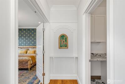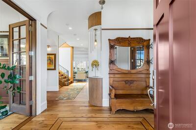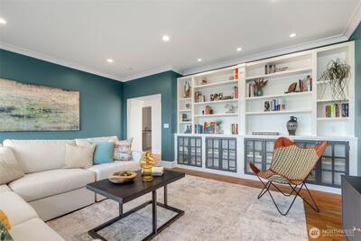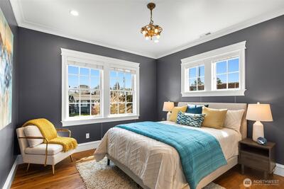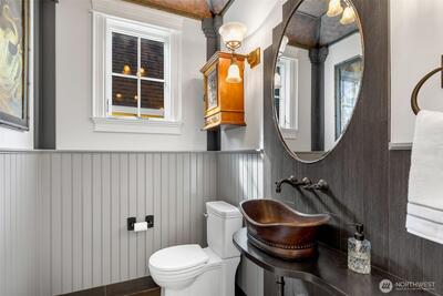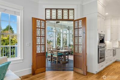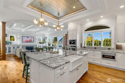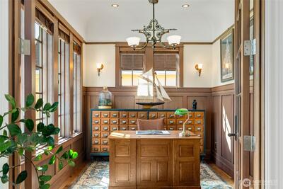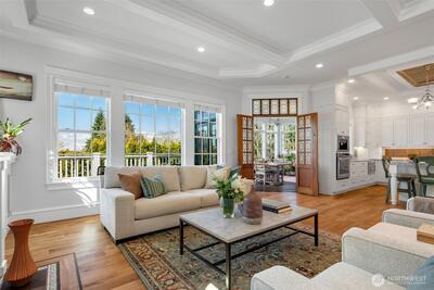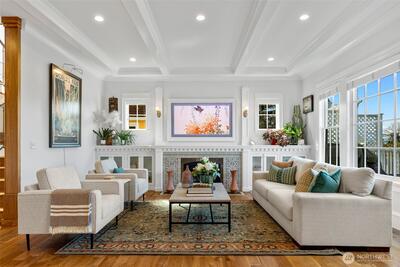 Every aspect of this home is truly remarkable and purposefully chosen. The materials and craftsmanship are distinct and flawless. Experience breathtaking sunsets from the sweeping Olympic and Sound view terraces. From the big-picture architecture, and the way the grand spaces interface around the jaw dropping kitchen, to the smallest details and how they bring delight, you will find nothing short of perfection. A newer construction that integrates the aesthetic and details of the former 1924 home with a thoughtful eye for the context of the neighborhood. A true Seattle Four-Square home that opens into a world of comfortable opulence. This curated home is a work of art in and of itself with slab walnut floors, custom tile, hand crafted millwork, and meticulously restored early 1900's lighting fixtures throughout. Stately great rooms for entertaining have hosted live music brunches in recent years and splendid dinner parties. Off the kitchen is a four-season western facing sun room that