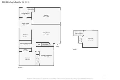 Welcome to your beautifully remodeled Beacon Hill rambler on a 7,152 sq ft lot with NR3 zoning, allowing a principal residence plus up to two Accessory Dwelling Units (ADUs)—great potential for future expansion or rental income. This home features a new roof, new double-pane windows, new LVP flooring, new light fixtures, and a new gas water heater. The updated kitchen includes newer appliances, while the living room offers a cozy wood-burning fireplace and real hardwood floors. Step outside to enjoy the private patio and level, fully fenced yard, perfect for relaxing or entertaining. The property also includes a 1-car garage and is located on a quiet street at the end of the road. Convenient location within walking distance to Wing Luke Elementary School and with easy access to I-5, Sea-Tac Airport, shopping, and downtown Seattle.