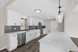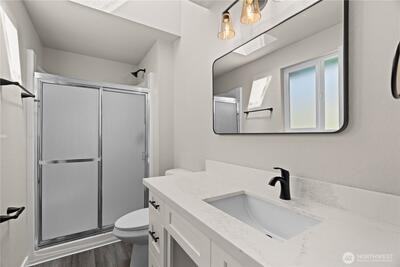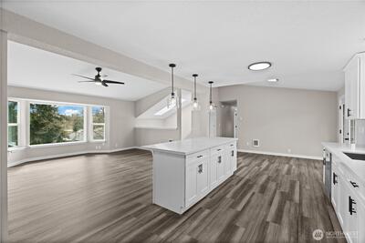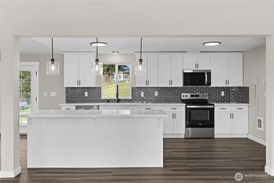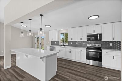 Welcome to this stunningly remodeled residence situated on a premier corner lot in the highly sought-after Meadows community of Olympia. Boasting 2,144 square feet of meticulously updated living space, this 5-bedroom, 2.5-bathroom home offers the perfect blend of contemporary style and functional design. Step inside to discover a state-of-the-art chef’s kitchen featuring brand-new white shaker cabinetry, premium quartz countertops, a designer tile backsplash, and a suite of integrated stainless-steel appliances centered around an expansive kitchen island. The luxurious finishes extend throughout the home with all-new flooring, modern trim, upgraded doors, and designer lighting. Each bathroom has been elegantly refreshed with new cabinets, quartz counters, and custom tile work. Significant system upgrades, including a new water heater and fresh interior and exterior paint, ensure a truly turn-key experience. The exterior is equally impressive, offering exceptional curb appeal and a ma